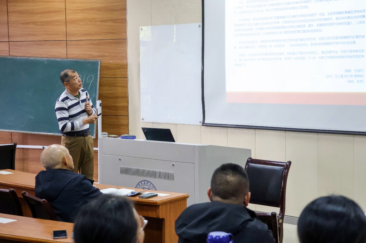 最后,互动交流环节,孙道恒院长结合自身科研经历进行经验分享,勉励全体教师勇于克服科研路上的困难,主动投身科研实践。针对未来科研组织工作,孙院长作出明确指示:要统筹解决新教师工作量安排问题,为其科研起步减负;优化研究生分配机制,精准匹配科研团队需求;充分发挥本科生在科研中的辅助作用,形成“本-硕-师”协同科研氛围。期待随着学院科研工作的稳步推进,未来能有序组建研究中心、研究院,进一步提升学院科研平台层次与核心竞争力。